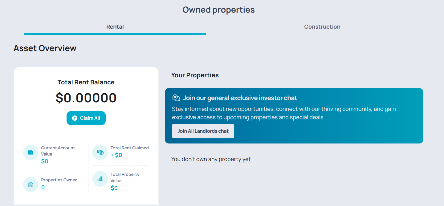 Collected rental income is automatically distributed to investors daily. Your earnings depend on how many property tokens you own, the more tokens, the larger your share.