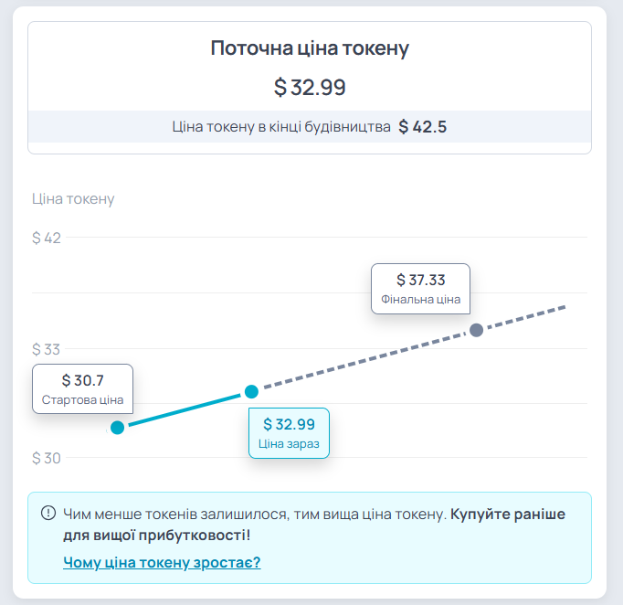 Ось чому купівля токенів на ранній стадії будівництва є більш вигідною - і майте на увазі, що кожен наступний токен для нерухомості, що будується, завжди буде коштувати дорожче за попередній.